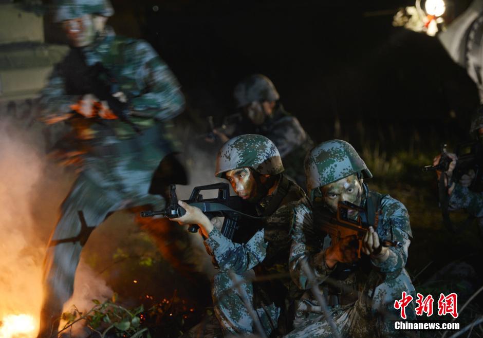 A mechanized infantry brigade from the PLA 16th Group Army conducts night training in summer.(Photo/Chinanews.com)