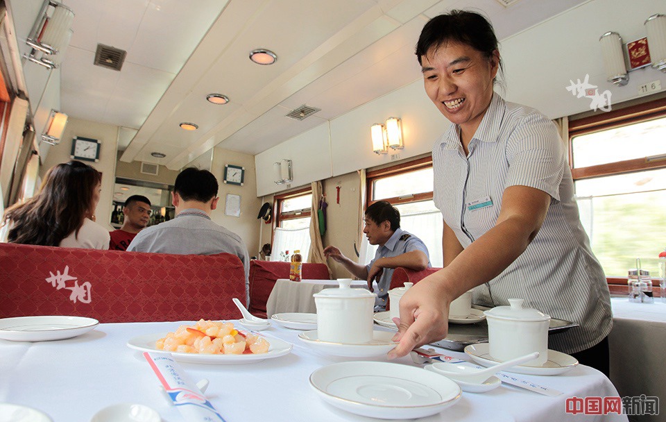 Waitress in the dining carriage. (Photo/China.com.cn)
