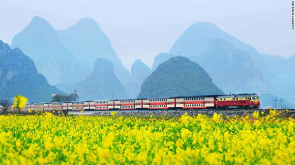 A moving train across the Aer mountain, Inner Mongolia in the mist of July.(Photo/Wang Wei)