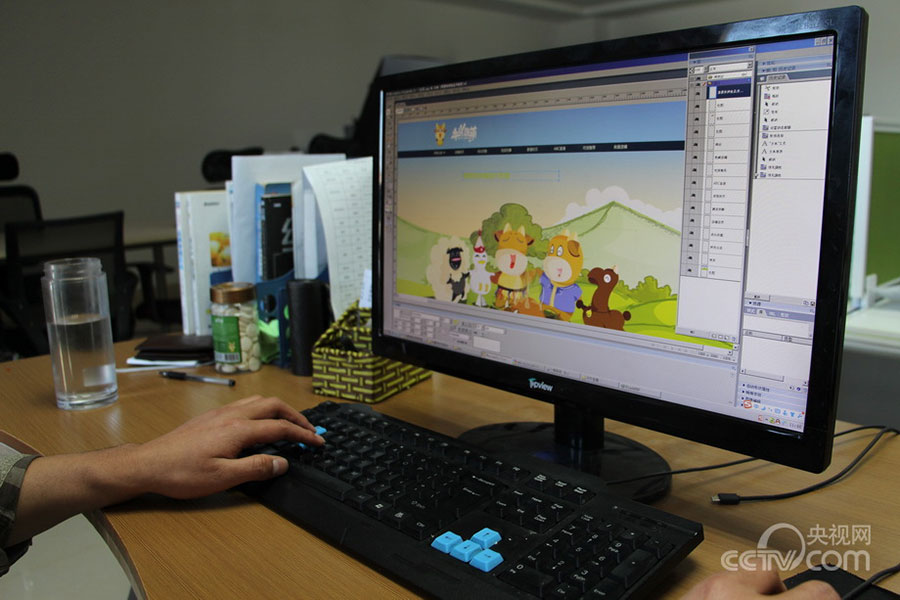A staff member designs the products animation on the computer. (CNTV/Du Xiaojing)