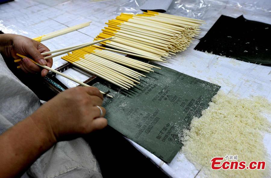 A worker makes chopsticks at the Tiantian company in the Cangshan district of Fuzhou, East China’s Fujian province. The district has a long history of producing diverse styles of chopsticks, and its craftsmanship is part of the province’s intangible cultural heritage list. However, the sector has been gradually declining, with few companies left in the district. Tiantian has been producing and selling chopsticks for more than 30 years, with most of its exquisite chopsticks sold in Japan, Southeast Asia, Europe and the United States. The production of quality chopsticks involves about twenty steps, such as selecting and polishing the materials, and takes between 15 days and a month.