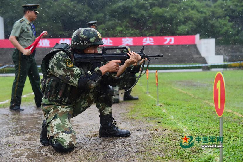 174 armed police soldiers from Guangdong border defense force conduct a shooting competition on May 23, 2015. The three-day competition aimed to build up their fighting capability and shooting skill in harsh environment. (Photo/81.CN)