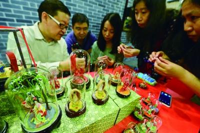 Visitors learn to make dough figures.(Photo/Beijing Daily) |