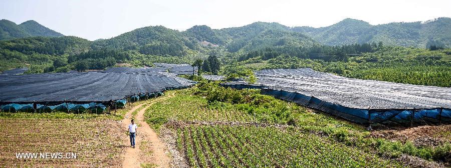 Zhu Guilin, a villager, walks past his ginseng plantation at Yulin Village in Ji'an, northeast China's Jilin Province, June 11, 2015. China has a long history of cultivating ginseng, which is considered to be nutritious and to have medicinal value in traditional Chinese medicine. Considered as the world's largest ginseng production area, Jilin produces about 85 percent of China's total ginseng output and 70 percent of the world's output. More than 98 percent of ginseng in Jilin is currently cultivated, not grown in the wild. (Xinhua/Wang Haofei) |
