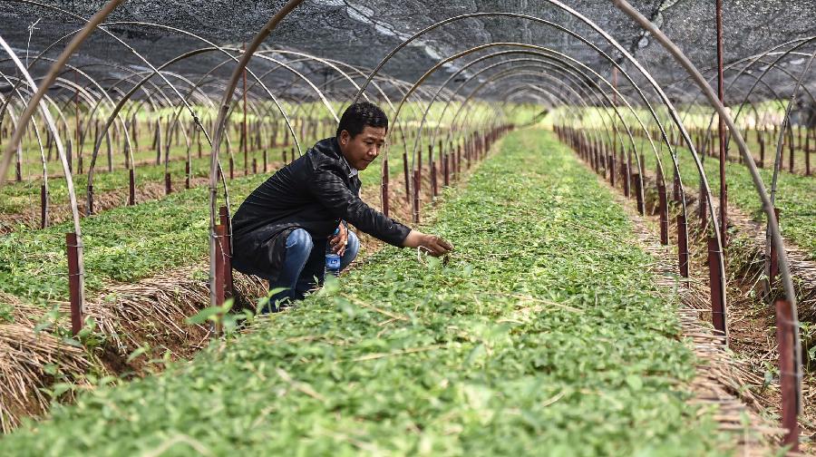 Zhu Guilin, a villager, weeds at his ginseng plantation at Yulin Village in Ji'an, northeast China's Jilin Province, June 11, 2015. China has a long history of cultivating ginseng, which is considered to be nutritious and to have medicinal value in traditional Chinese medicine. Considered as the world's largest ginseng production area, Jilin produces about 85 percent of China's total ginseng output and 70 percent of the world's output. More than 98 percent of ginseng in Jilin is currently cultivated, not grown in the wild. (Xinhua/Wang Haofei) |