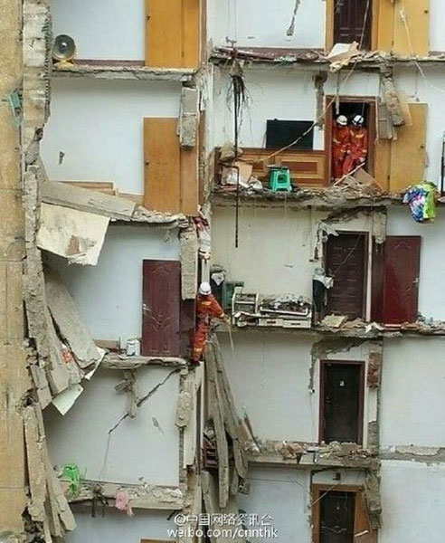 An nine-story residential building collapsed in Zunyi city, Southwest China's Zunyi province on Sunday morning. [Photo/Sina Weibo] |