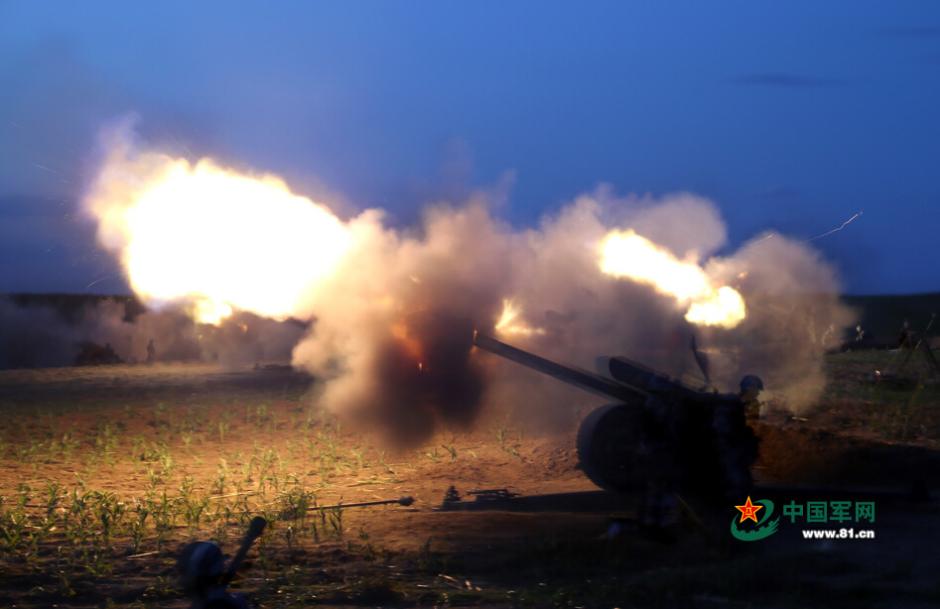 An artillery regiment of the PLA airborne troops conducts combat firing drill on the night of June 9, 2015. (www.81.cn/Wang Haitao)
