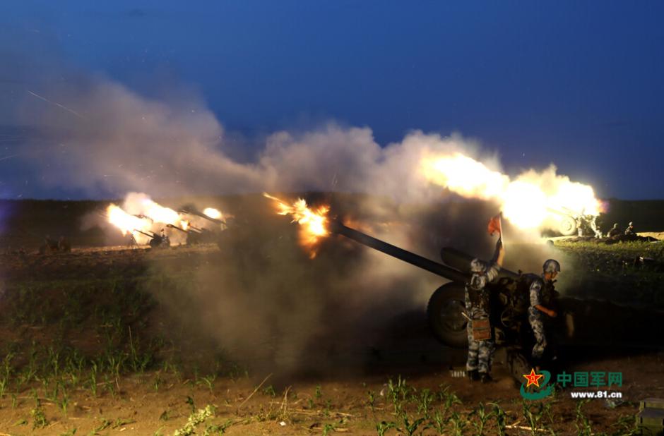 An artillery regiment of the PLA airborne troops conducts combat firing drill on the night of June 9, 2015. (www.81.cn/Wang Haitao)