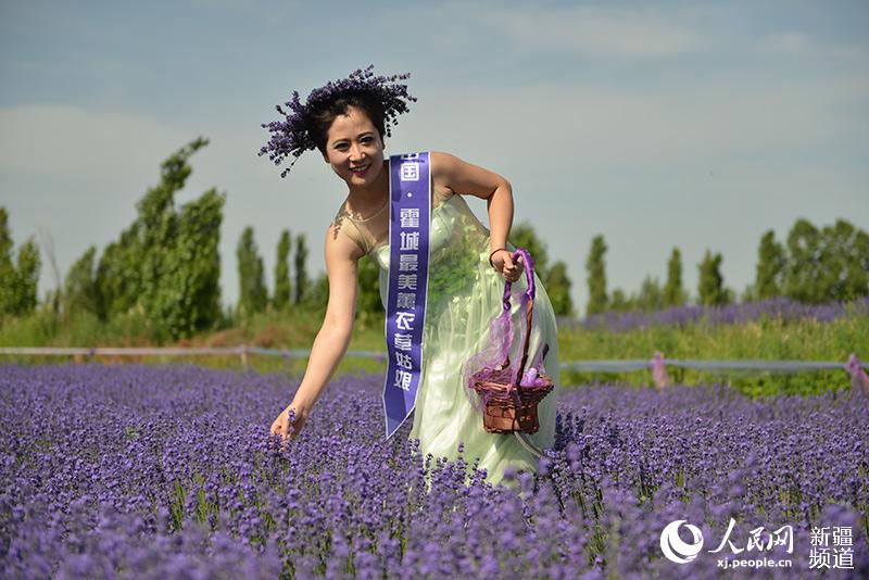 A “lavender girl” poses for photo in the Lavender field. (Photo/people.cn)