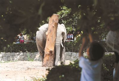 Recently, visitors find an "itch scratcher" standing in Beijing Zoo. The "flexible stump" is a new toy for elephants. According to the designer, elephants like to scratch the itches with rough objects and the "flexible stump" has become a good itch scratcher for them. The scratcher will be upgraded and provide more natural ways of playing for the animals in the future.