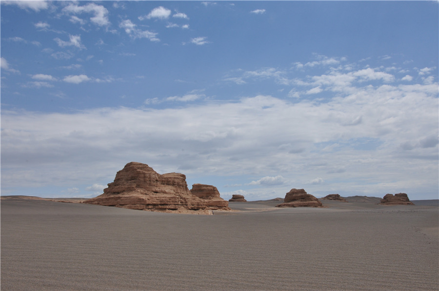 Yadan National Geologic Park is an enormous landform group known as “Town of Demons”. The park is situated in northwestern China’s Gansu province, covering an area of around 346 square kilometers. Yardang means precipitous hillock in the Uyghur language. A Yardang is formed by dust and sand. As the miniatures of many world-renowned architectures such as the Temple of Heaven in Beijing, the pyramid, the beacon towers can be found here, the park seems as an architectural art museum of the world. (People’s Daily Online/Zhang Yuan)
