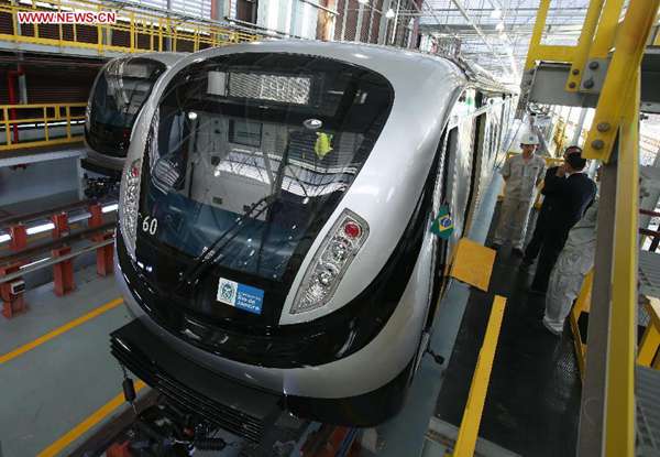 Photo taken on May 20, 2015 shows a Chinese-made subway train for the Olympic special line in Rio De Janeiro, Brazil. (Xinhua/Pang Xinglei) |