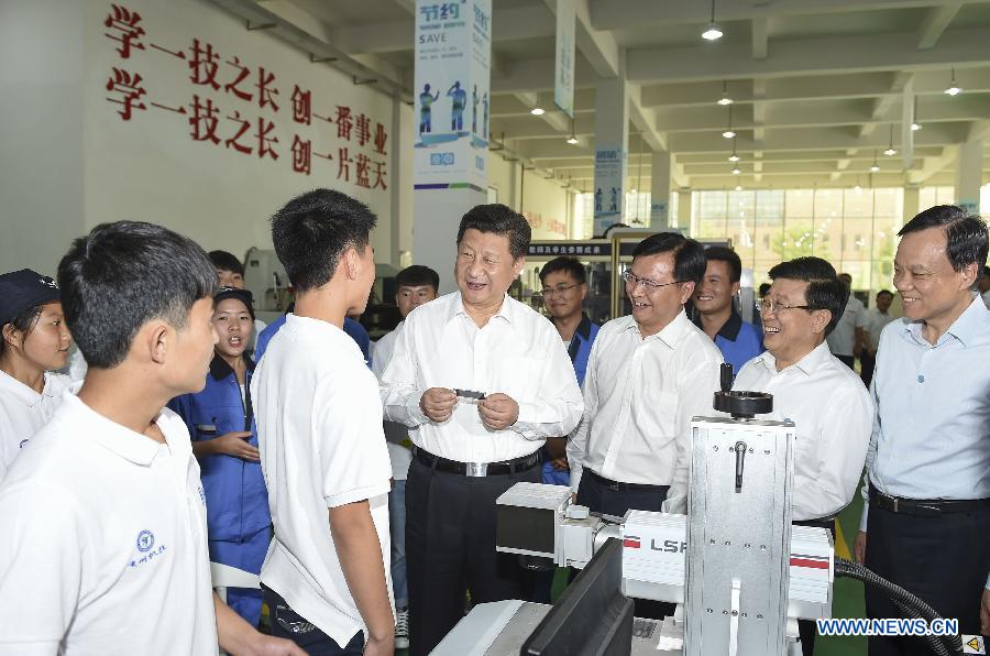 While visiting an "education zone" which is home to 19 vocational colleges with nearly 60,000 students and teachers, the president described vocational education as an important part of the country's education system and urged continued improvement of it.
