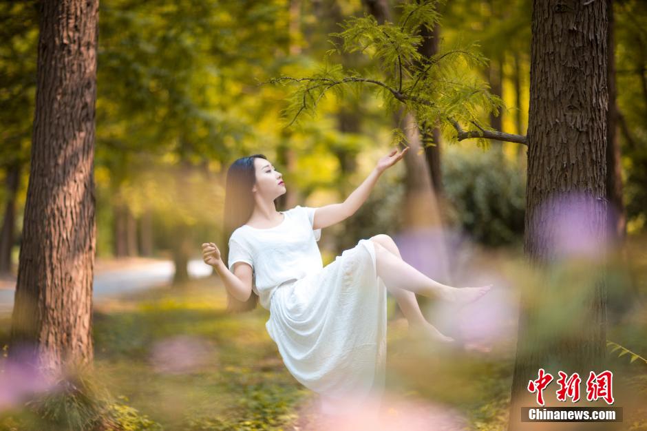 Xiao Ge takes amazing shots of herself floating in the air. Xiao Ge is a dancer from POLE 11, China's first pole dance girl group.(Photo/Chinanews.com)