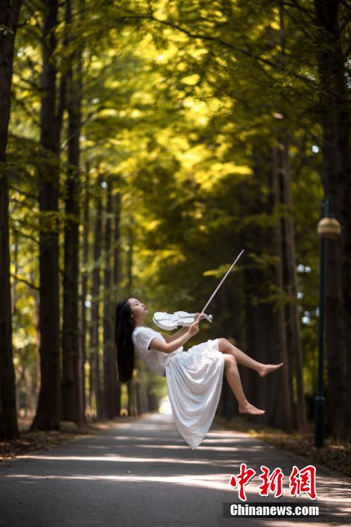 Xiao Ge takes amazing shots of herself floating in the air. Xiao Ge is a dancer from POLE 11, China's first pole dance girl group.(Photo/Chinanews.com)