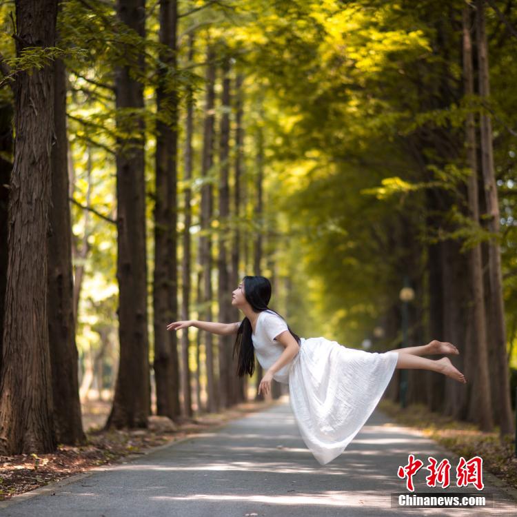 Xiao Ge takes amazing shots of herself floating in the air. Xiao Ge is a dancer from POLE 11, China's first pole dance girl group.(Photo/Chinanews.com)