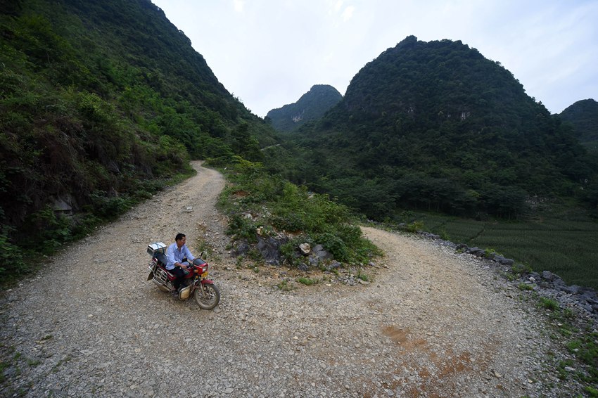 Mingtun village is a remote village deep in the mountain area in southwest China's Guangxi Zhuang Autonomous Region. The only access to this village is a sandstone road. Liang Zhengwen, 57, is the only teacher in the school of Mingtun village. Since he was dispatched to teach here in May 2009, he has been riding a motorcycle for 10 kilometers across the hills to give classes to the pupils every day.