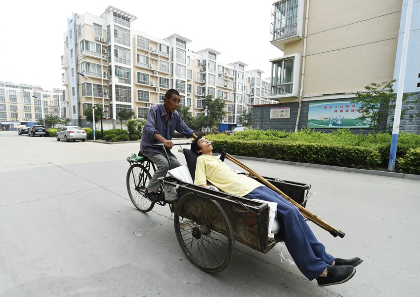 Zhou Baozhong, 69, is a villager in Zhoujiacun village, east China's Shandong province. His son, Zhou Yong was diagnosed with ankylosing spondylitis mixed with femoral head necrosis after he graduated from middle school. In order to take care of his paralyzed son, Zhou Baozhong quitted his job as carpenter and returned to the village in 1992. From then on, Zhou has made a living by collecting scraps and paid the treatment fee of more than 400,000 yuan in the first 10 years.
