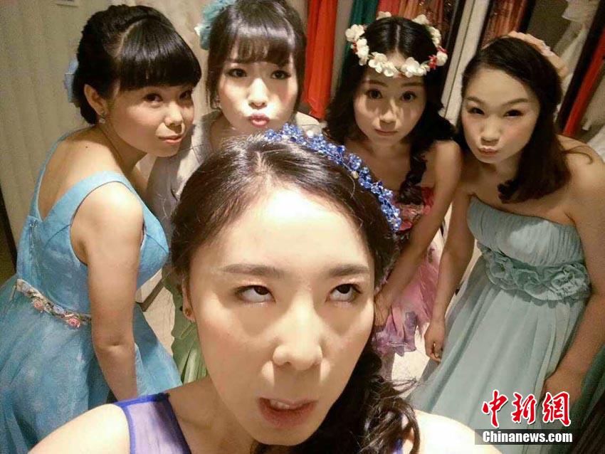 College girls take graduation photos in wedding dresses (4)