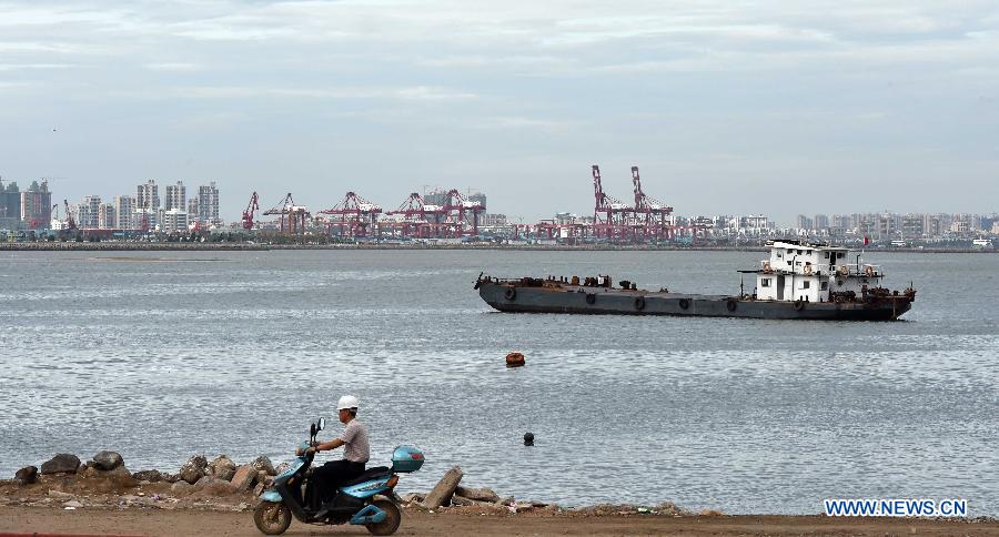 Ships berth at Xingang Harbor in Haikou, capital of south China's Hainan Province, June 21, 2015. Tropical storm Kujira strengthened into a typhoon in the South China Sea on Sunday, which is moving northward and likely to become the first typhoon to hit China this year. (Xinhua/Zhao Yingquan) |