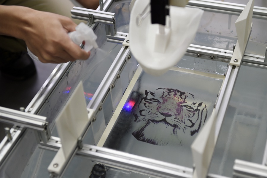 A three-dimensional coloring technology is invented by a research team of Zhejiang University. This technology can solve the problem of coloring three-dimensional objects. (Photo/ Xinhua)