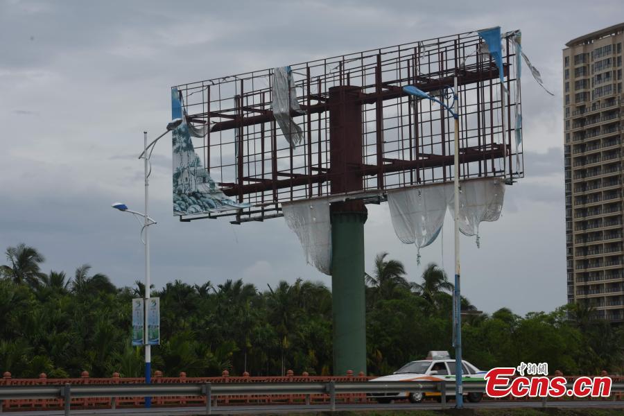 Strong winds brought by typhoon Kujira damage a billboard in downtown Qionghai, South China’s Hainan province, June 23, 2015. (Photo: China News Service/Meng Zhongde)
