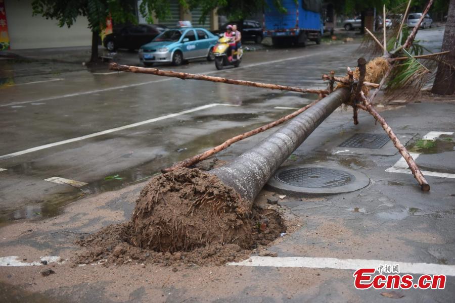 Strong winds brought by typhoon Kujira topple trees in downtown Qionghai, South China’s Hainan province, June 23, 2015. (Photo: China News Service/Meng Zhongde)