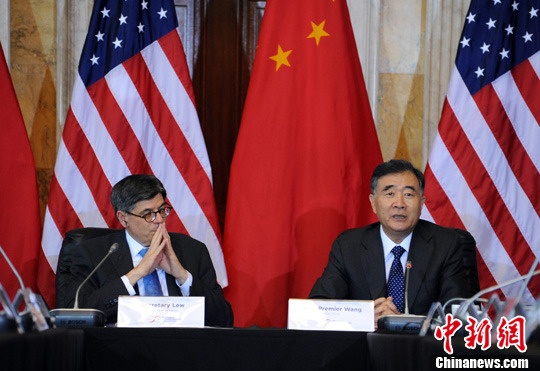 Chinese Vice Premier Wang Yang and US Secretary of Treasury Jack Lew. (Photo/Chinanews) |