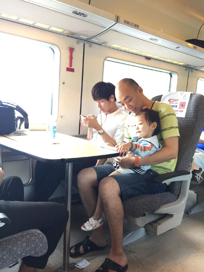 A young man wearing earphones has gone viral online for taking care of a little girl recently. The photos show this man successfully stopped the little girl from crying by sharing one of his earphones with her. It is said that they were on a train from Guangzhou to Shenzhen on June 22. The young man's kindness and handsome looking won high praise from netizens. Many fans said they hope to see more selfies on his Weibo. (Yangtze evening news/Xu Jing) |