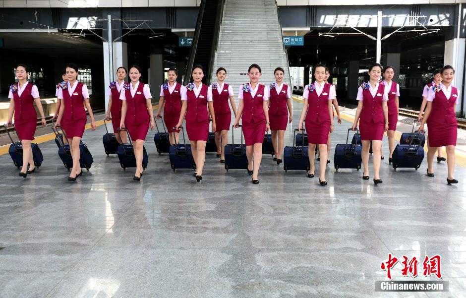 Stewardesses for Hefei-Fuzhou high speed rail show up in new uniform (6)