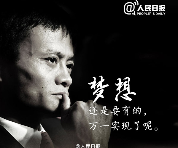Jack Ma once said, "We'd better have a dream,in case it comes true someday." .(Photo/ official weibo of People’s Daily)