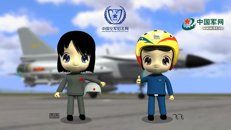 The recruitment department of China's People's Liberation Army airforce has launched two cartoon figures, named Feifei and Yuanyuan, in a bid to attract more applicants. The male cartoon Feifei wears a helmet, symbolizing the highest honor of fighter jet pilot. Cartoons have increasingly been used by government departments or institutes in China to improve public communication. (Photo/81.cn)