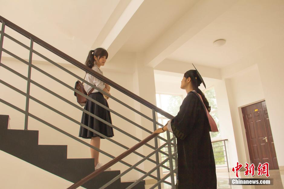A group of creative graduation photos released by college students in Jinjiang College of Sichuan University has drawn much attention from the public. The students photoshopped themselves into the photos, showing their youth stories in fresh and romantic style. (Photo/Yang Xueping)