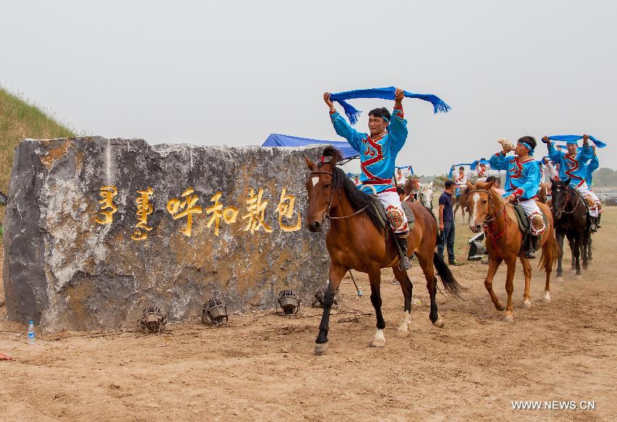 Participants take part in a parade during a Nadam fair in Hohhot, capital of north China's Inner Mongolia Autonomous Region, June 28, 2015. Nadam is a mass traditional Mongolian festival where people celebrate harvests and pray for good luck. (Xinhua/Ding Genhou) |