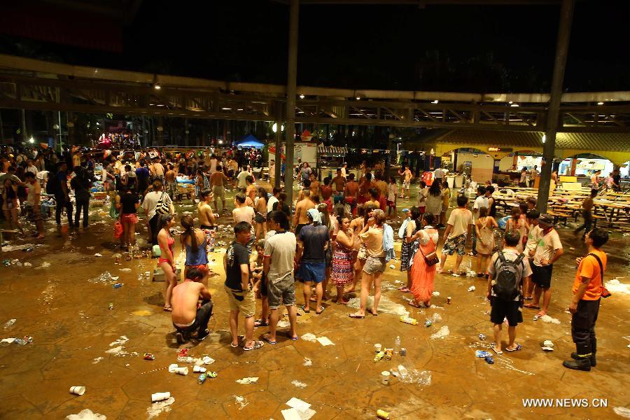 People gather on the open ground after a fire took place at a park in New Taipei, southeast China's Taiwan, June 27, 2015. A fire, which was suspected of resulting from explosion of a large amount of unknown flammable powder, in a recreational park in Taiwan's New Taipei city on Saturday has injured at least 474 people. (Xinhua) |