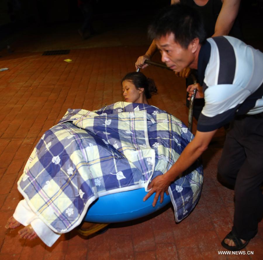 An injured in a fire is attended at a park in New Taipei, southeast China's Taiwan, June 27, 2015. A fire, which was suspected of resulting from explosion of a large amount of unknown flammable powder, in a recreational park in Taiwan's New Taipei city on Saturday has injured at least 474 people. (Xinhua) |