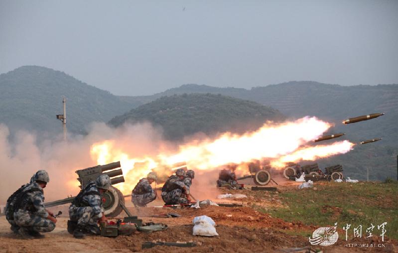Artillery detachments of a PLA airborne regiment conduct a live firing drill on June 18, 2015.(Photo/kj.81.cn)