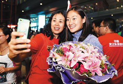 After waiting three hours, fans cheered names of Chinese players as they appeared one by one from the exit, together with coach Hao Wei and staff members. Everyone of the team received flowers and enjoy the enthusiasm from the crowd.