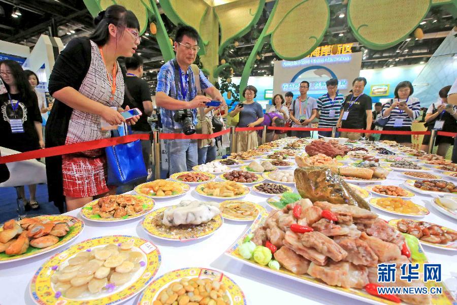 People visit the rare stone banquet at Beijing International Tourism Expo 2015. (Photo/ Xinhua)