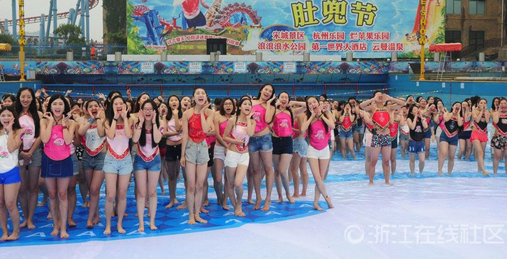 Thousands of girls from dozens of high schools and colleges attend a graduation ceremony in Dudou in Hangzhou, capital of east China's Zhejiang province, June 28, 2015. "Dudou", or bellyband, is a piece of cloth that covers one's belly. It dates back thousands of years. It was used by Chinese women as an undergarment in ancient times and can be considered China's most original underwear. However, Dudou of the diamond shape, which is popular today, had not appeared until the Qing Dynasty. (Photo/zjol.com.cn)