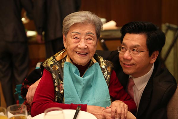 Kai-Fu Lee and his mother at a wedding banquet of his nephew. Lee says he'd neglected the emotional needs of his family, and will spend more time with them. Photo provided to China Daily
