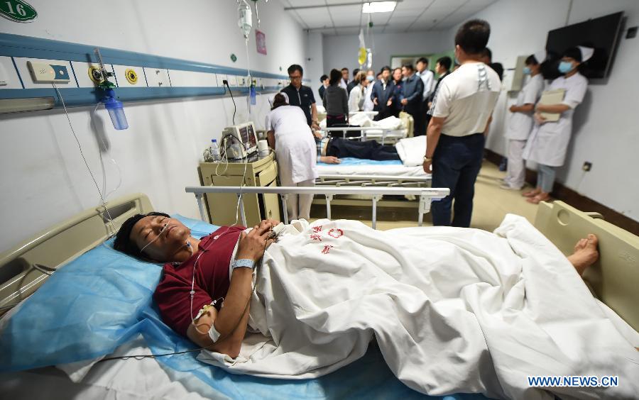 Injured passengers receive medical treatment in a hospital in Ji'an City, northeast China's Jilin Province, July 2, 2015. A bus carrying 26 South Korean tourists and two Chinese fell off a bridge on a road from Yanji to Dandong in Jilin Province on Wednesday, killing 11 and injuring 17, local government said. The traffic of the road where accident happened has resumed. (Xinhua/Wang Haofei)