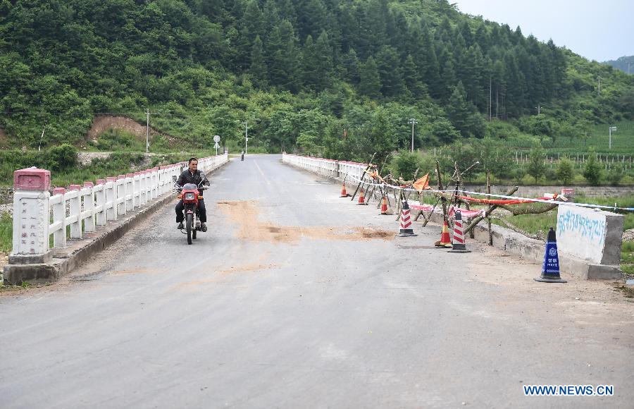 Photo taken on July 2, 2015 shows the traffic of the site of road accident is resumed on Ji'an-Dandong Road in Ji'an City, northeast China's Jilin Province, July 2, 2015. A bus carrying 26 South Korean tourists and two Chinese fell off a bridge on a road from Yanji to Dandong in Jilin Province on Wednesday, killing 11 and injuring 17, local government said. The traffic of the road where accident happened has resumed. (Xinhua/Wang Haofei)