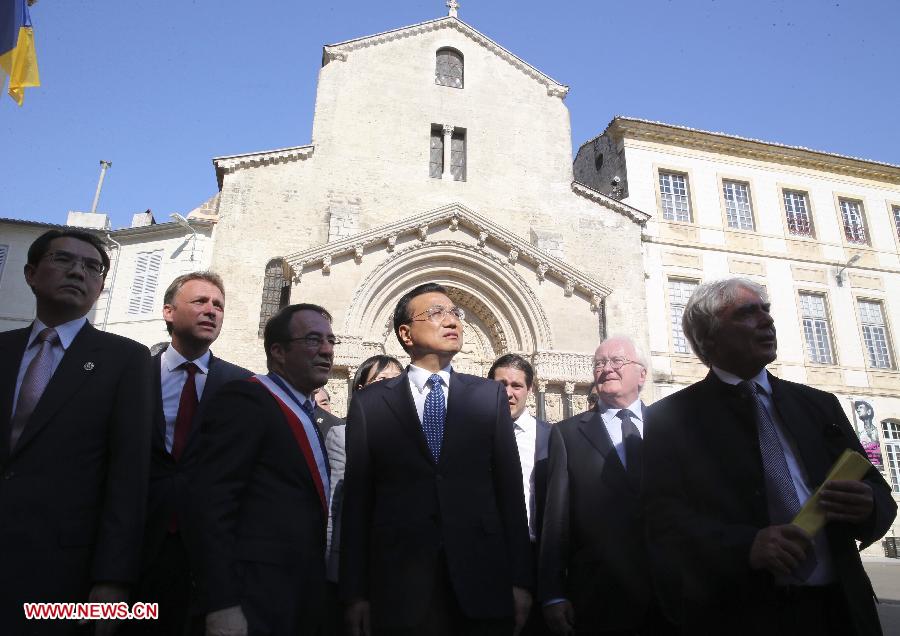 Chinese Premier Li Keqiang (4th L) visits Arles, south France, July 1, 2015. (Xinhua/Ding Lin)