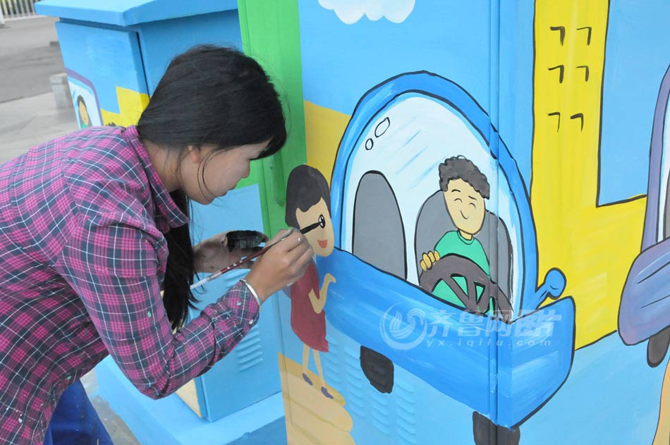 Liu paints on a distribution box in Huangdao district, Qingdao, east China's Shandong province. (yx.iqilu.com/Zhang Jingang) |