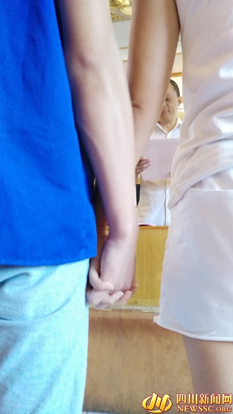 A 23-year-old woman named Xiaoqing has written 50 love letters to prove her relationship with a man called Xiaozhong, who is held in custody in Mianzhu, southwest China's Sichuan province. A civil affairs clerk issued marriage certificates to them in the detention house this morning. (Photo/NEWSSC.ORG) |