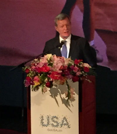 US Ambassador Max Baucus gives a speech.” (People's Daily Online/Yao Xinyu)