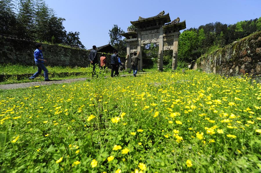 File photo taken on April 21, 2012 shows Tangya Tusi site in central China's Hubei Province. Tusi sites -- the remains of an ancient political system adopted by Chinese emperors to govern ethnic minority regions in south-central and southwest China -- were inscribed in the World Heritage List on Saturday. The inscribed sites, located in mountainous areas, are Laosicheng in Hunan Province, Tangya in Hubei Province and Hailongtun Fortress in Guizhou Province. Tusi literally means hereditary tribal headmen appointed by Chinese emperors to govern the often unruly ethnic minority regions in the central and western parts of south China, where the specific tribal governance system was adopted from the 13th to the early 20th century. (Xinhua/Hao Tongqian)