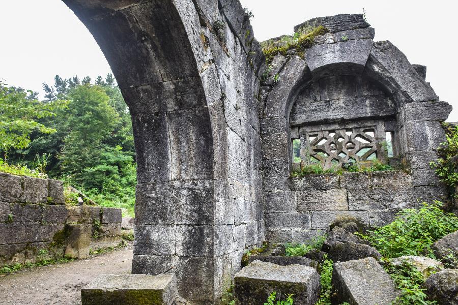 Photo taken on July 3, 2015 shows a scene of Hailongtun Fortress in southwest China's Guizhou Province. Tusi sites -- the remains of an ancient political system adopted by Chinese emperors to govern ethnic minority regions in south-central and southwest China -- were inscribed in the World Heritage List on Saturday. The inscribed sites, located in mountainous areas, are Laosicheng in Hunan Province, Tangya in Hubei Province and Hailongtun Fortress in Guizhou Province. Tusi literally means hereditary tribal headmen appointed by Chinese emperors to govern the often unruly ethnic minority regions in the central and western parts of south China, where the specific tribal governance system was adopted from the 13th to the early 20th century. (Xinhua/Liu Xu) |