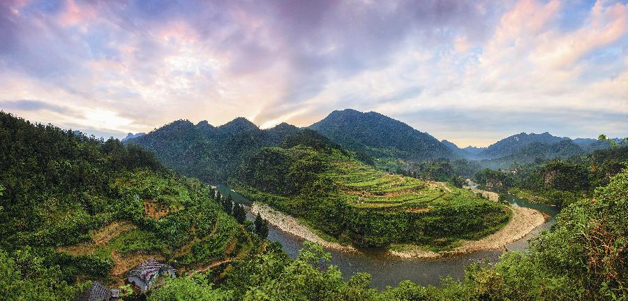 This undated file photo shows Laosicheng site and Lingxi River in central China's Hunan Province. Tusi sites -- the remains of an ancient political system adopted by Chinese emperors to govern ethnic minority regions in south-central and southwest China -- were inscribed in the World Heritage List on Saturday. The inscribed sites, located in mountainous areas, are Laosicheng in Hunan Province, Tangya in Hubei Province and Hailongtun Fortress in Guizhou Province. Tusi literally means hereditary tribal headmen appointed by Chinese emperors to govern the often unruly ethnic minority regions in the central and western parts of south China, where the specific tribal governance system was adopted from the 13th to the early 20th century. (Xinhua)